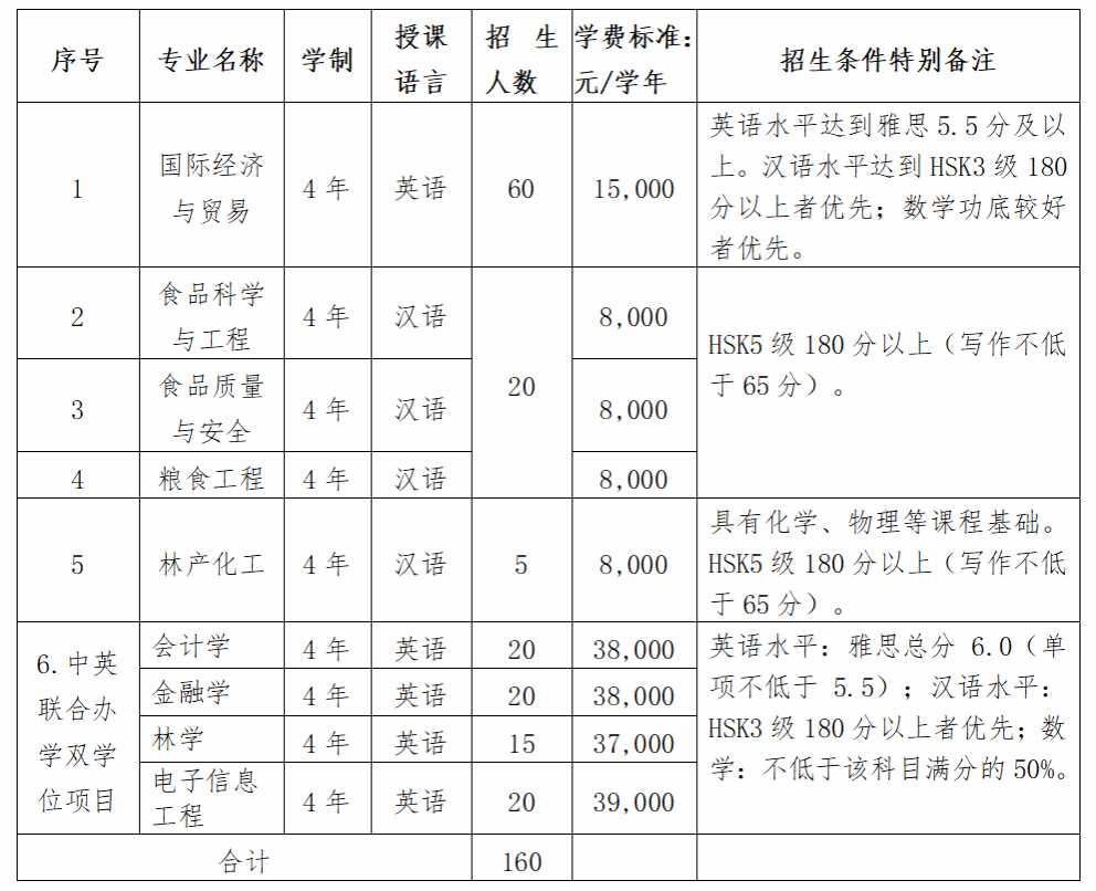 1.非中国籍公民,无犯罪记录,身心健康;高中毕业,成绩优异;在华国际学生无“ 三非”问题,无严重违反校纪情况,自愿遵守中国的法律法规和中南林业科技大学各项规章制度。