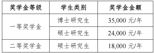 该奖学金旨在奖励在我校学习满一年,且成绩优异、表现突出的国际学生学历生。奖学金标准为:硕士生 20,000 元/人·年,博士生 25,000 元/人·年。
