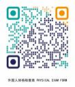 5.外国人体格检查表(见附件1或扫描二维码下载)。 申请人应严格按照《外国人体格检查表》的填写示范(见附件2或扫描二维码下载)逐项检查,填写语言为中文或英文二选一。缺项、首页未贴本人照片或照片上未盖章、无医师签字和医院盖章、无检查日期、姓名与护照全名不一致的检查表一律无效。检查时间必须为 2026 年 2 月 20 日后。如被录取,须携带《外国人体格检查表》原件到校报到。