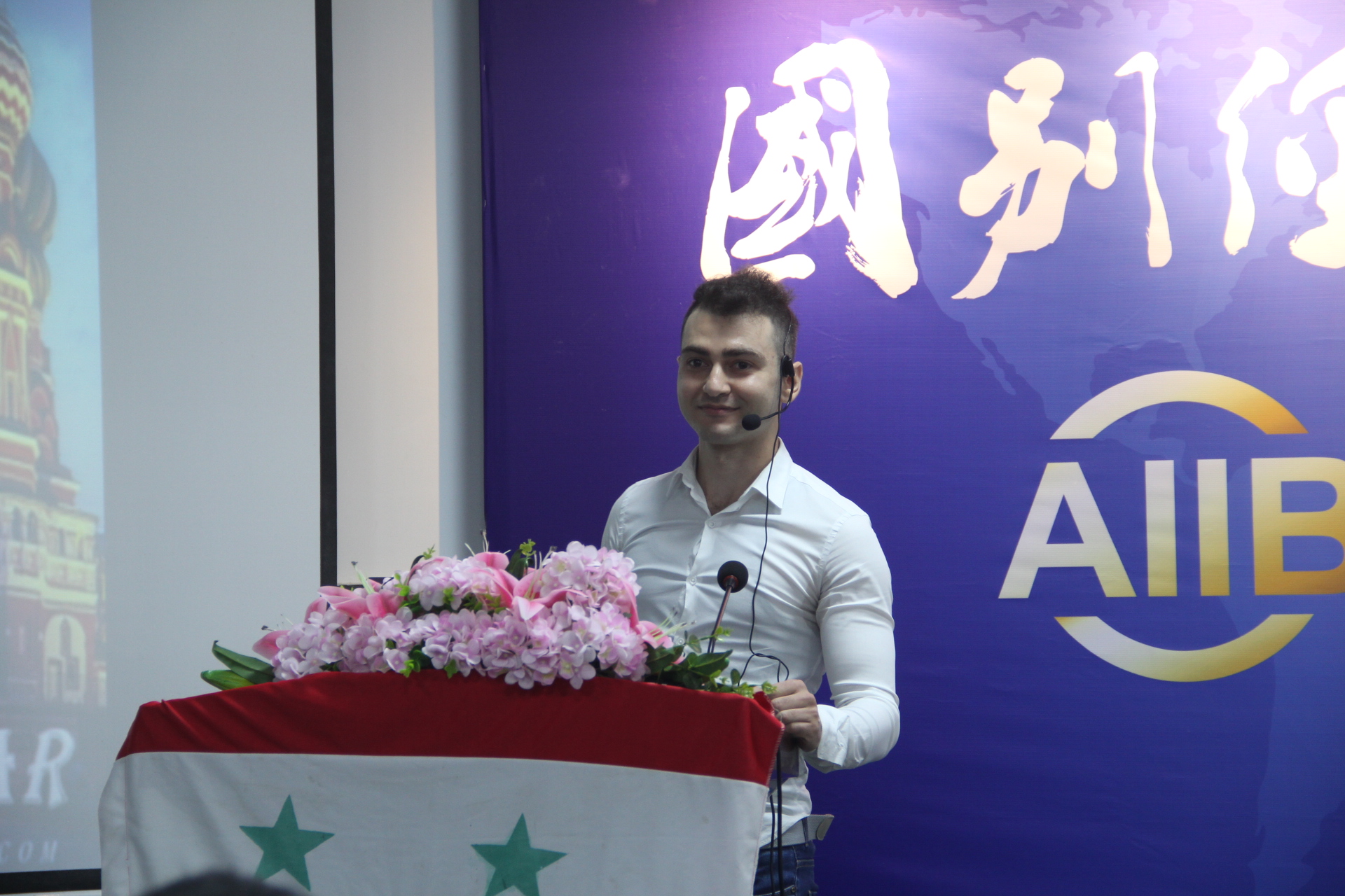 本次论坛由叙利亚学生Yousef Qutaiba作为主讲人进行演讲,他运用精美的图片、大量的数据和资料对俄罗斯的特色美食、经济情况以及俄罗斯小型企业发展状况等进行了详细的介绍和说明。