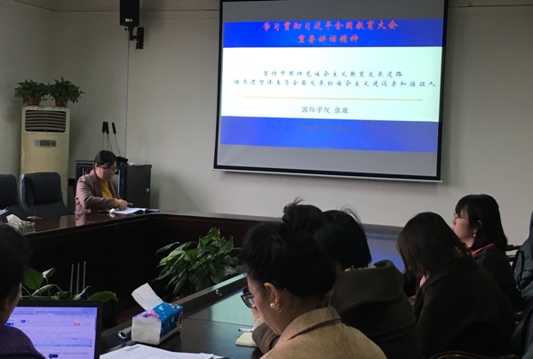 院长邓天文要求全体教职工深刻学习领会习近平总书记关于教育事业发展的新理念新思想新观点,要理论联系实际,要抓住机遇,努力办好我校留学生教育。
