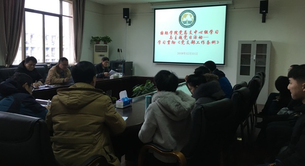 12月11日下午,为进一步学习宣传、贯彻落实《中国共产党支部工作条例(试行)》精神,我院党总支在致远楼603室举行中心组与主题党日学习活动。学习活动由党总支书记李志并导读。学院中心组成员、全体教工党员及学生党员代表参加活动。