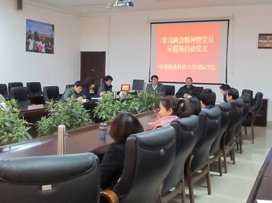3月23日下午,国际学院在六楼会议室隆重举行“两会”精神学习暨共产党员示范岗授牌仪式。学院全体教职工都按时参加了活动。整个活动由学院总支委员、院长王志文主持。