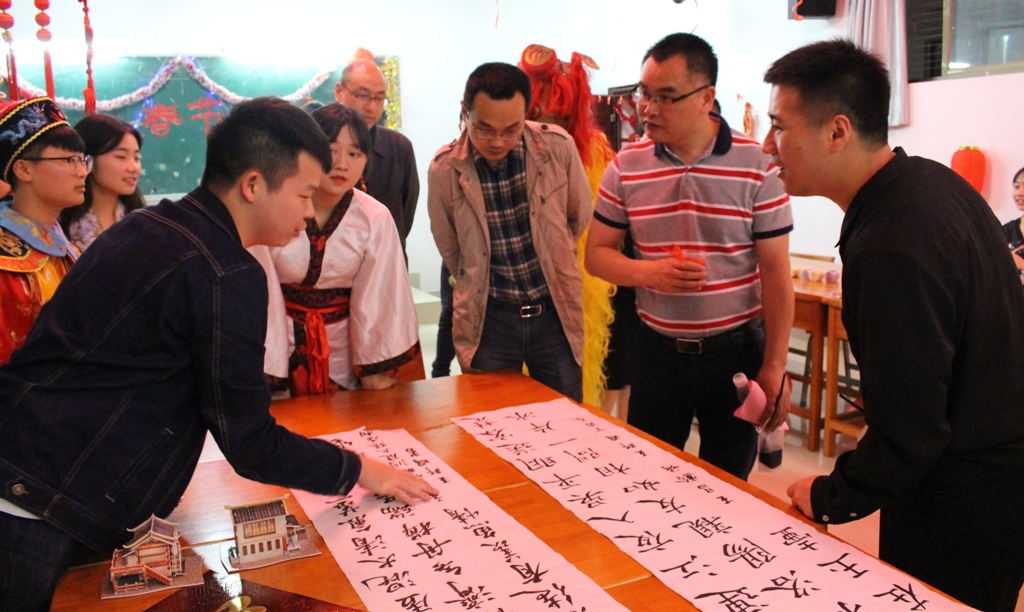 5月7日晚6:30,一年一度的国际文化展在国际楼115教室盛大开幕,学校团委书记李凯、学工部李健林副部长、我院党总支书记李志、院长邓天文、党总支副书记陈幸福及学工办各辅导员。在开幕式剪彩完成后,领导在讲解员的带领下参观了各个场馆,7点钟场馆整体开始对外开放。