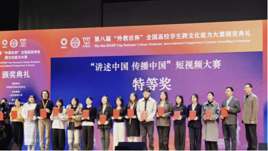 12月11日-12月14日,第八届“外教社杯”全国高校学生跨文化能力大赛全国决赛、总决赛在上海外国语大学虹口校区成功举办。我校留学生团队在主赛道中荣获特等奖亚军,在短视频赛道中荣获特等奖。