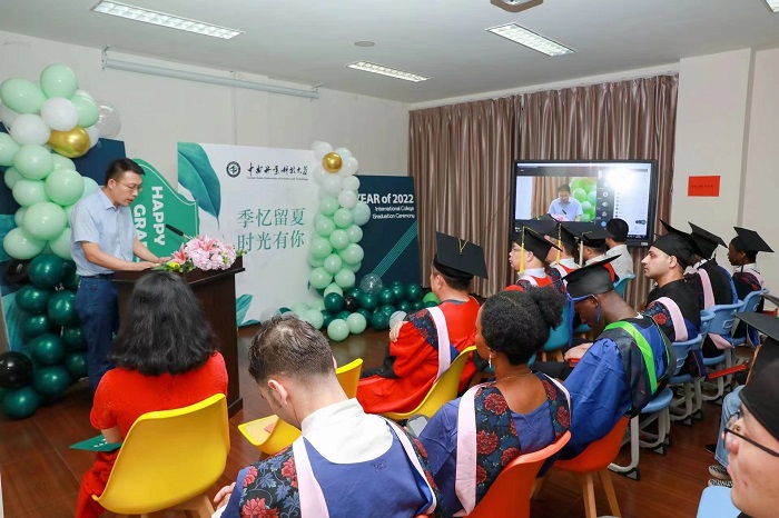 6月23日下午,我院在致远楼隆重举行2022届国际学生毕业典礼。受疫情影响,本次毕业典礼采用“线下+云端”相结合的方式,让暂时不能返校的国外学生共同参与。