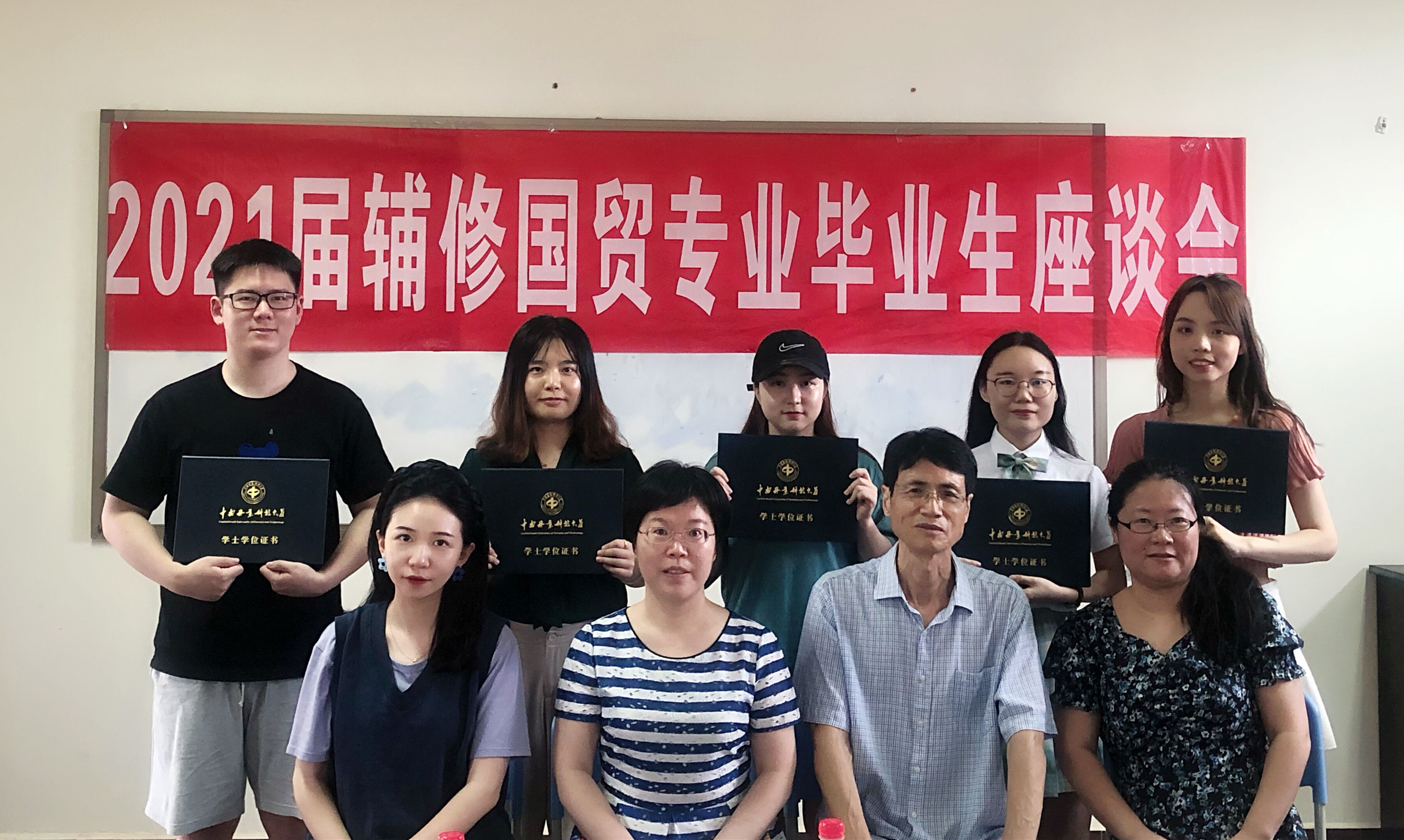 6月19日下午,我院组织召开2021届辅修国际经济与贸易专业毕业生代表座谈会。学院领导以及教师代表李志、张敬、赵冬燕、曾萌等出席会议。