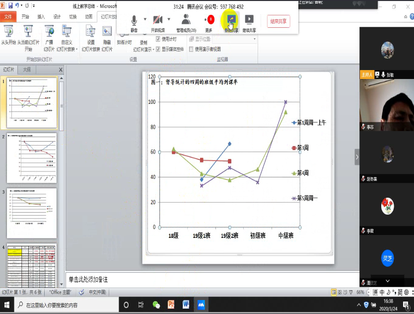3月24日下午,我院通过“腾讯会议”成功召开线上教学四周工作总结会,全院教职工参加了会议。