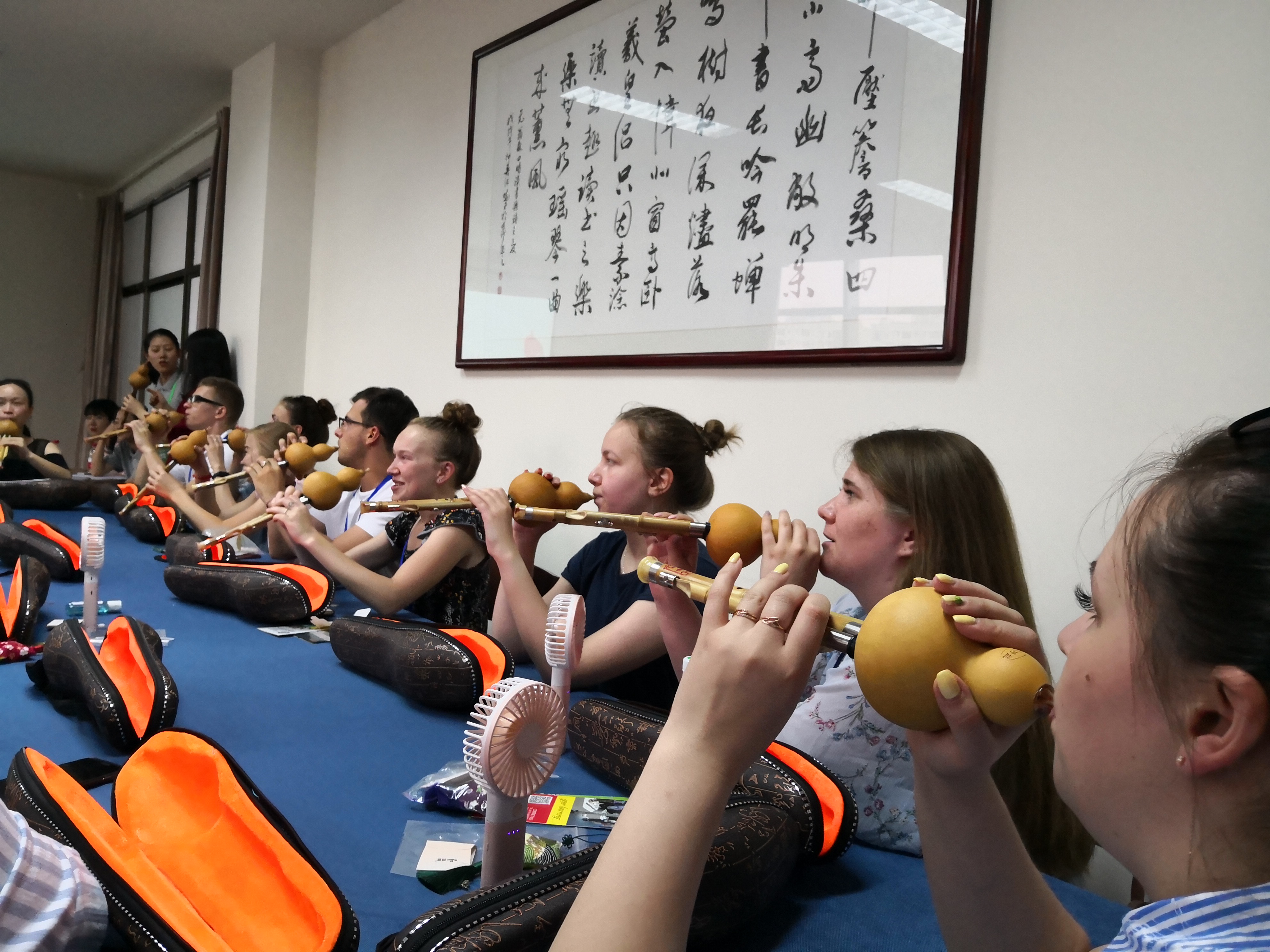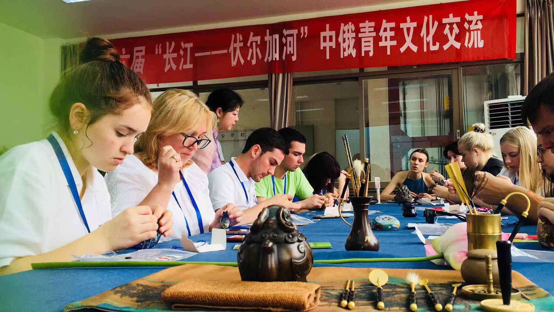 7月21日,第六届“长江-伏尔加河”中俄青年文化交流活动在我院学生活动中心举行。今天的活动分为三个部分:留学湖南、中国香道体验和葫芦丝体验。在“留学湖南”宣讲会上,我院程含林老师简要介绍了湖南省的高等教育资源、来华留学学生教育概况和中南林业科技大学留学生学习、生活、课外活动及留学生教育特色; 食品科学与工程学院李安平教授介绍了食品学院办学特色、科研情况、学术成果和办学优势; 旅游学院罗芬教授介绍了旅游学院的办学历程和特色。宣讲会后的中国香道体验上,在行业专家刘宁的指导下俄罗斯青年们现场体验了中国香道,并亲手制作了中国香包;之后的葫芦丝体验将本次交流活动推向高潮,短短一个小时的练习,俄罗斯青年门就能吹奏出《兄弟俩》和《我有一只小羊羔》。文化交流会之后,俄罗斯青年纷纷表示,本次活动非常精彩、记忆深刻、意犹未尽!国际学院通过这种沉浸式的体验,让俄罗斯的青年们感受到中国文化的魅力!(图文/程含林 审核/潘四群)
