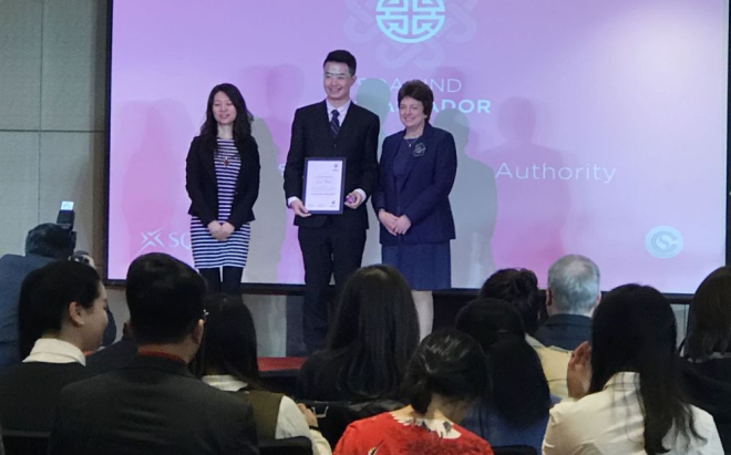 3月21日,由英国苏格兰SQA HND项目组与教育部中国留学服务中心共同主办的SQA HND项目“理想大使”授予典礼在北京北辰洲际酒店举行。我院廖诗豪同学被授予了SQA HND “理想大使”的光荣称号。