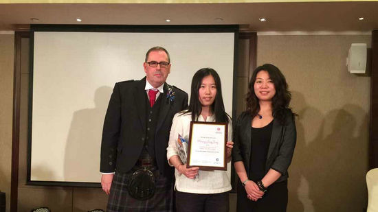5月21日周四下午,SQA HND项目 (中国教育部留学服务中心与英国苏格兰学历管理委员会共同引进的英国高等教育文凭)首批理想大使颁奖典礼在北京中国大饭店隆重举行。SQA HND国际业务主管Alistair Shaw、国际运营部Neil、教育部留学服务中心国际合作处副处长秦岚及各高等院校获奖学生参加了此次典礼。自教育部留学服务中心引进SQA-HND项目以来,每年都有大批优秀的中国学生远赴各个国家完成学业,这些优秀的学生在自己的专业领域取得了骄人的成绩。2015年,SQA特设理想大使这一奖项,以表彰学习成绩优异,积极参与校园活动,勇于挑战和自我实现的学生。我院2013级国际经济与贸易专业学生黄婧倞同学经过严格审核,最终由英国苏格兰学历管理委员会和中国留学服务中心推选为SQA理想大使。