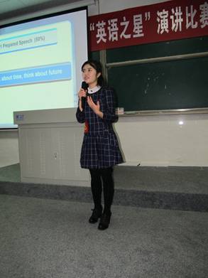 比赛分为两个环节,第一个环节是命题演讲(题目:Think about time,think about future),第二部分是即兴演讲及外教提问。选手们举例鲜活、语音标准,表达流利,不时引来场内一阵阵的掌声。