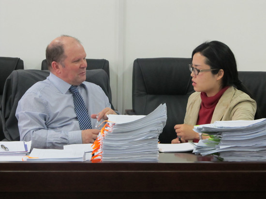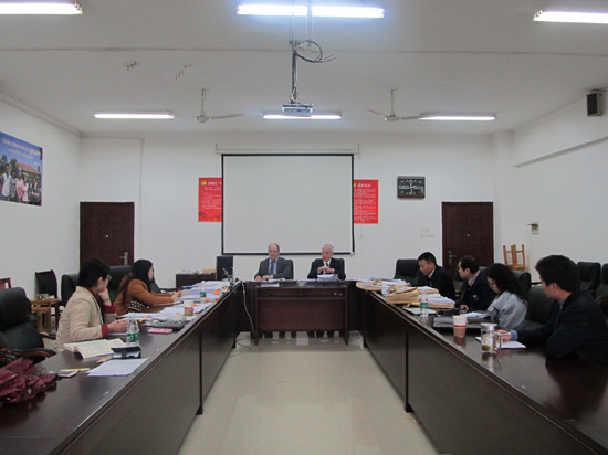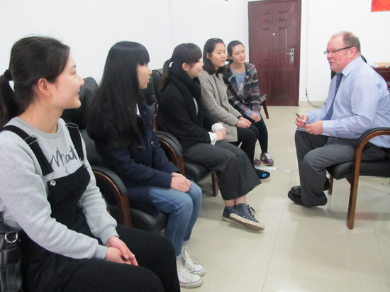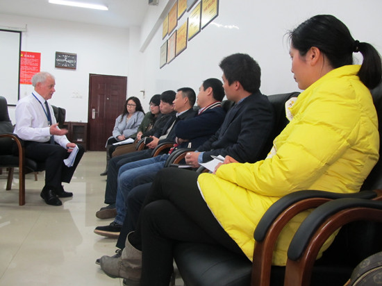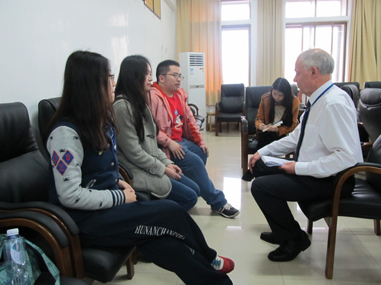 接机的过程是漫长的,也是值得的。为了保证项目教学质量,加强教学过程监控,我们从严格遵守SQA-HND内外审制度做起。每次课程的外审主要针对课程教学开展过程中的资源管理、学生支持、考核与审核、档案与数据管理四大项共11项指标进行审查。一般外审工作过程分四步进行:1.阅读学生考卷和学院教学管理等材料;2.与任课教师及内审员交流教学与学生考核情况;3.与学生交流学习和教师授课情况;4.对外审课程结果进行反馈。经过一天紧张的工作,最后外审员David和Bill以“high confidence”分别通过了对Total Quality Management、International Marketing: The Mix两门课程的外审。