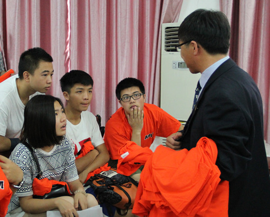 9日上午,AUM校方代表与项目学生交流会在国际楼607举行,国际学院张敬副院长主持会议, 对Eric博士一行表示欢迎,并介绍了项目学生的学习情况。经过多环节交流互动后,Eric博士代表AUM想学生赠送AUMT恤,交流会最后他与该项目师生集体合影留念。